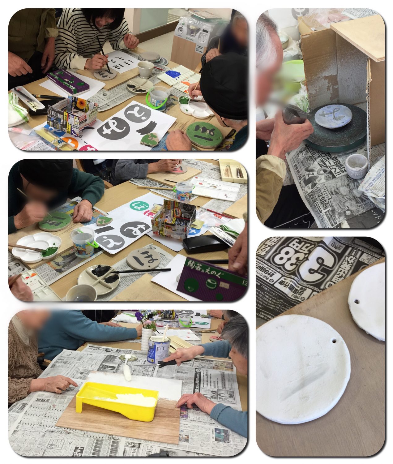 素焼きした陶板に、書道の先生が文字を書いてくださいました。そして、色つけ、釉薬かけ、本焼きの工程へ。完成が楽しみです♪