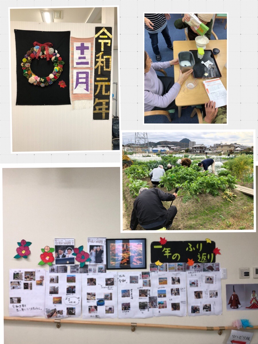 ほほえみプラスでは、1年を振り返ったポスターを作ったり、パンを焼いて手作りの柚ジャムを塗ったり、10大ニュースを考えたり、巨大なリースを作ったり、楽しく過ごしています。